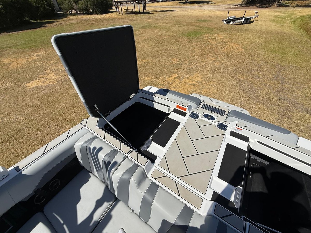With only 37 hours, powered by the Monsoon M6Di 430hp engine, this boat has effortless torque for surfing, wakeboarding, cruising, and loaded family days on the water.
